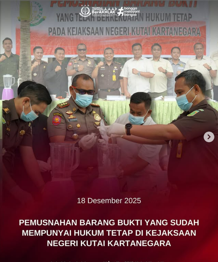 Kutai Kartanegara – Kejaksaan Negeri Kutai Kartanegara melaksanakan pemusnahan barang bukti perkara pidana umum yang telah memiliki kekuatan hukum tetap, pada Kamis, 18 Desember 2025, bertempat di halaman kantor Kejari Kutai Kartanegara.